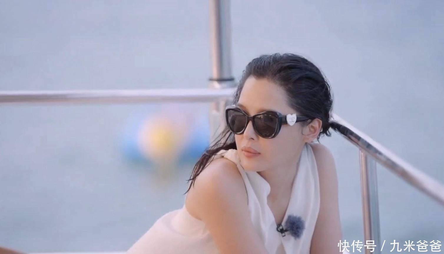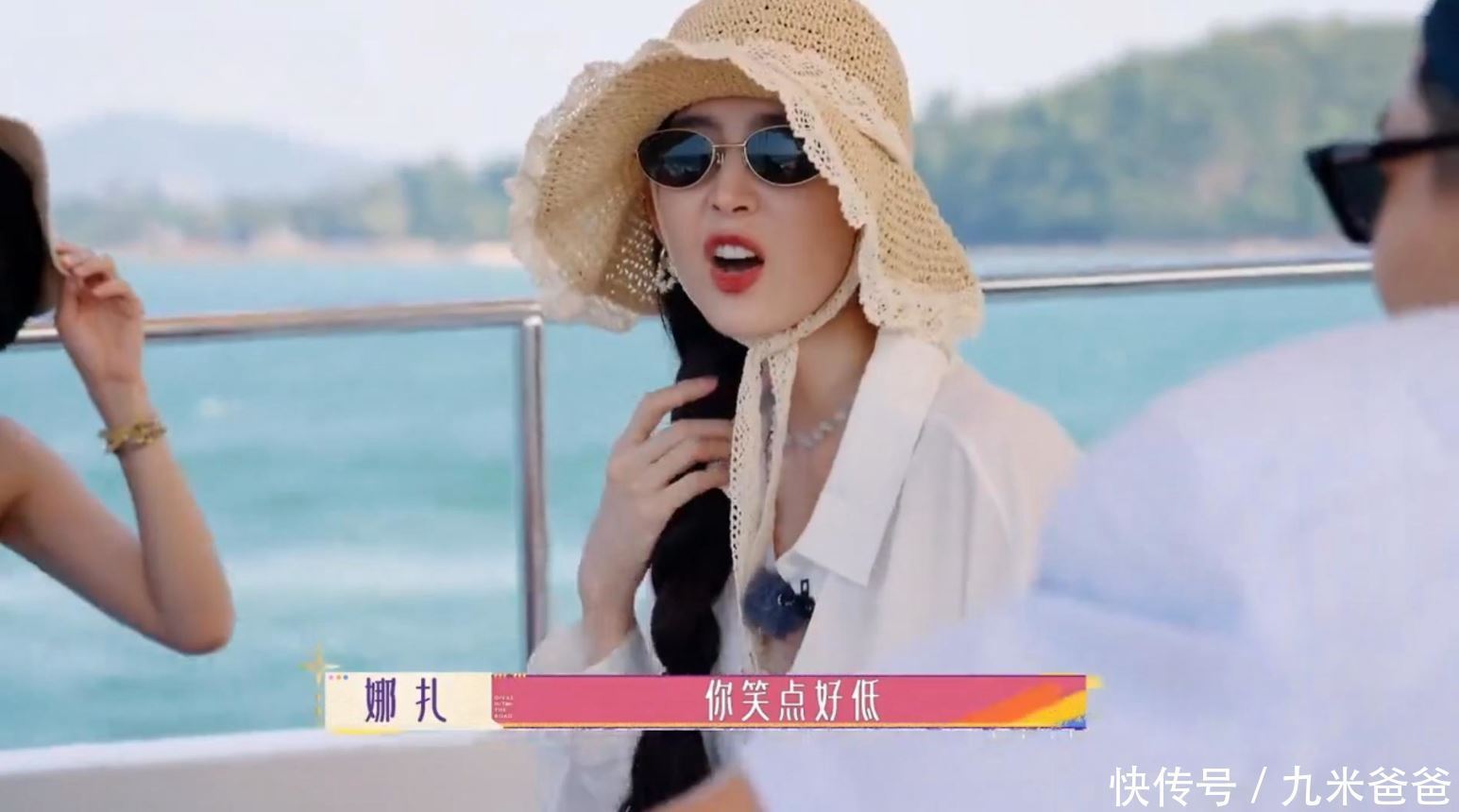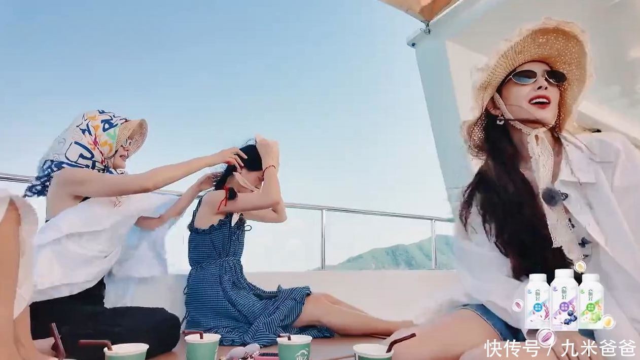 在船上,赵昭仪的墨镜不小心掉到海里,其他人就提醒她赶紧把帽子系上。