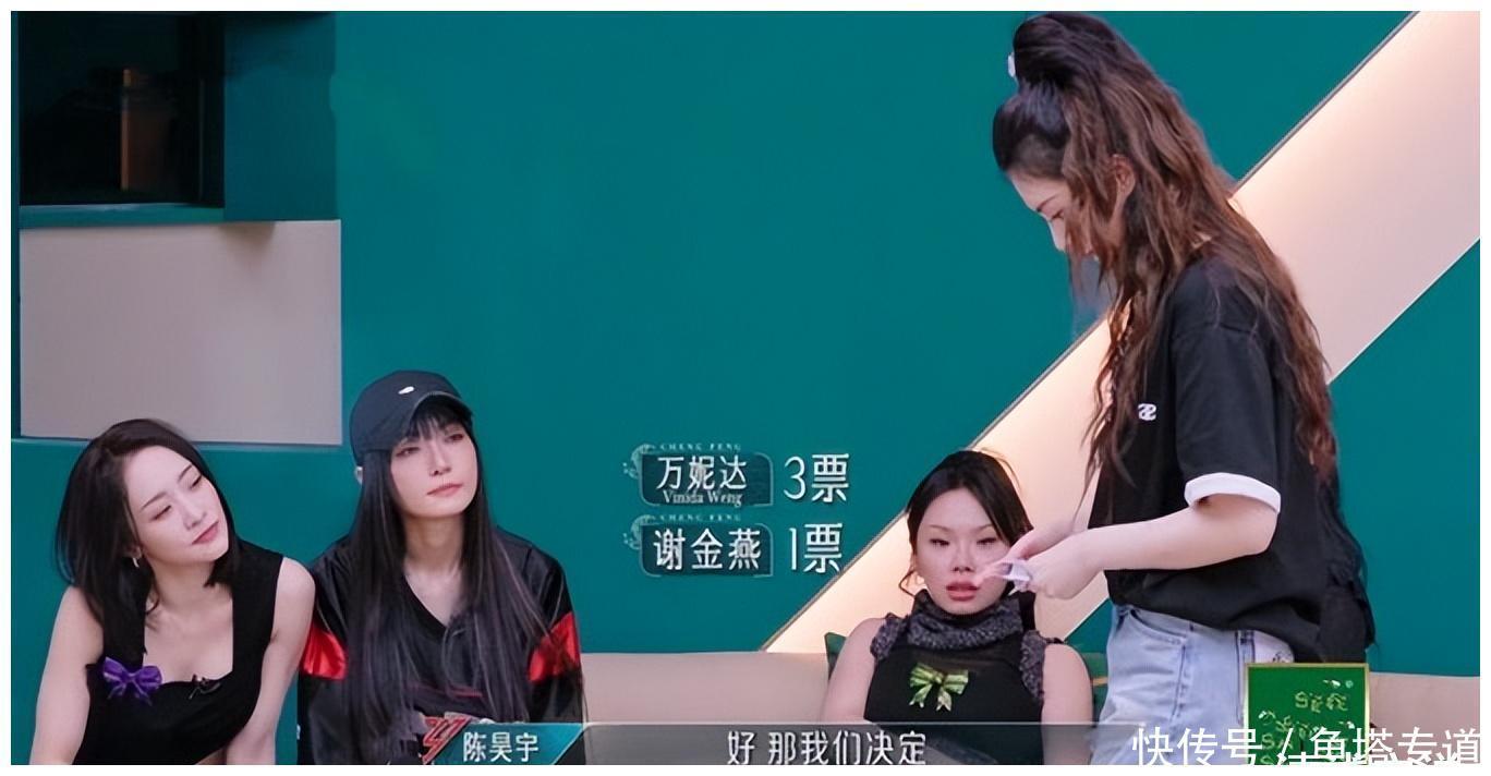 至于同样自荐了的谢金燕嘛,她想唱周杰伦闽南语版《落雨声》,反差是有,可是现场观众能听懂闽南语的估计比例不大,加上谢金燕人气也是一直低迷,纵然她是专业歌手,也是比较难为队伍拿到20分加乘的。所以投票时只有一位队员选择了她,她也只能像柳岩那样仅是表达一下自己在《乘风2024》舞台唱闽南语歌的愿望而已,为了团队还是得暂时收敛自己的梦想。