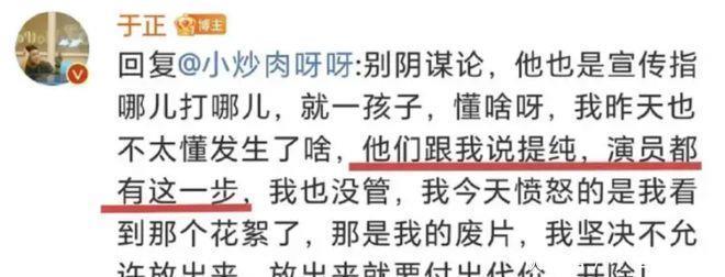 02 这件事谁是谁非其实也不好说 目前都是于正一个人出面在回应,他也把自己放到了一个受害者的位置 但他的营销手段,大家应该也有所耳闻,总之目前我还是存疑